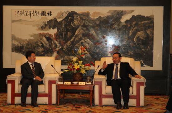 湖南省委副书记梅克保(右)同香港中联办经济部副部长孙湘一先生(左)亲切交谈。