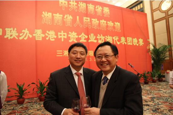 湖南省委副秘书长龚文密先生(右)与三湘集团有限公司董事长刘胜辉(左)合影。