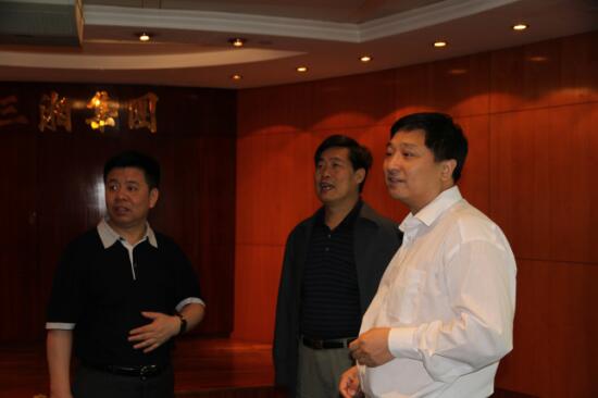 图为益阳市市长助理曾宪军先生(右二)和三湘集团有限公司董事长刘胜辉先生(左二)、湖南铁路投资集团有限公司副总经理李维克先生、益阳交通局副局长杨正才先生合影。图为三湘集团有限公司董事长刘胜辉先生(右一)向益阳市市长助理曾宪军先生(中)介绍三湘集团有限公司情况。