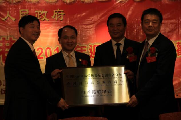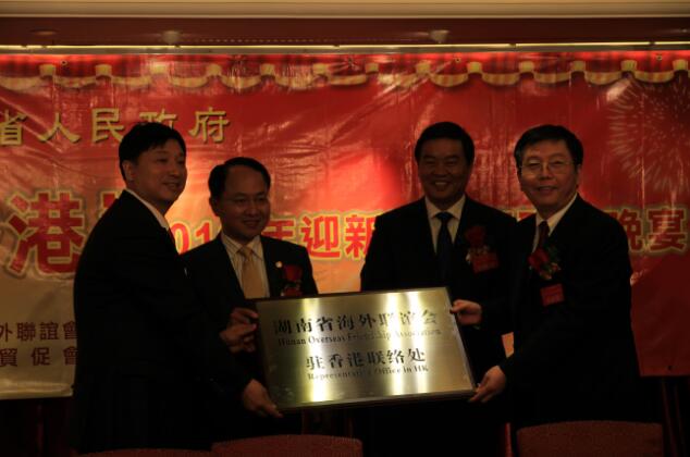 迎新联谊会活动之前,何报翔副省长还在三湘公司会见了中央人民政府驻香港联络办公室副主任王志民,一同出席了“湘企•湘人•香港”2012年迎新联谊会,并为湖南省海联会驻香港联络处、湖南省贸促会驻香港联络代表处授牌。