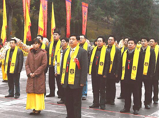 图为三湘集团有限公司董事长刘胜辉率湖南炎帝资产管理有限公司各股东单位在炎帝祭祖典礼上。