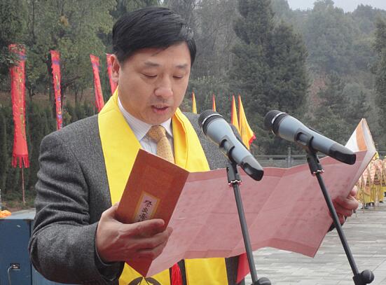 图为三湘集团有限公司董事长刘胜辉恭读《祭炎帝文》。