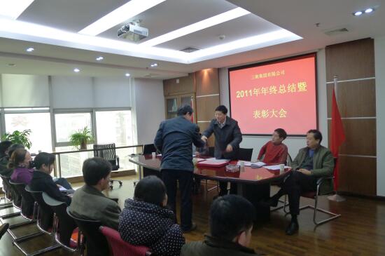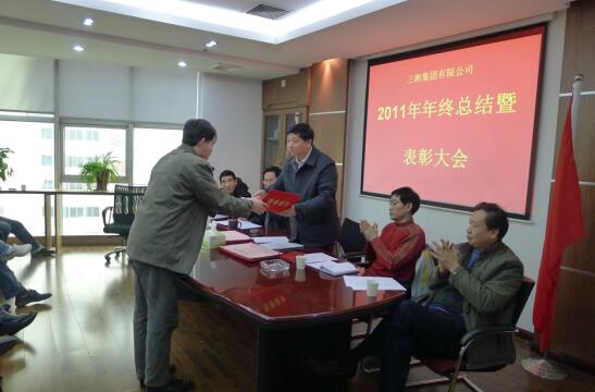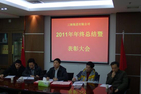 物转星移辞旧腊,风和日丽迎新春。在这辞旧迎新的日子里,三湘集团有限公司于2012年1月12日上午10点,在公司九楼会议室,召开了2011年年终总结暨表彰大会,集团公司董事会成员、部分中层干部、长沙办事处及在长分支机构的全体员工参加了这次大会。大会对2011年公司的工作进行了全面的总结,并表彰了一批工作突出、表现优秀的先进工作者。