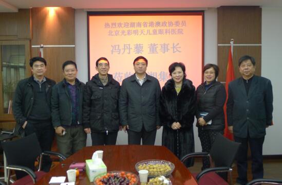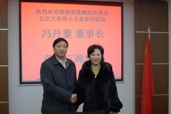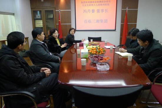 2012年1月13日上午,正在长沙市参加湖南省政协十届五次会议的湖南省政协港区委员、北京光彩明天儿童眼科医院董事长冯丹藜女士应邀到访三湘集团有限公司长沙办事处。