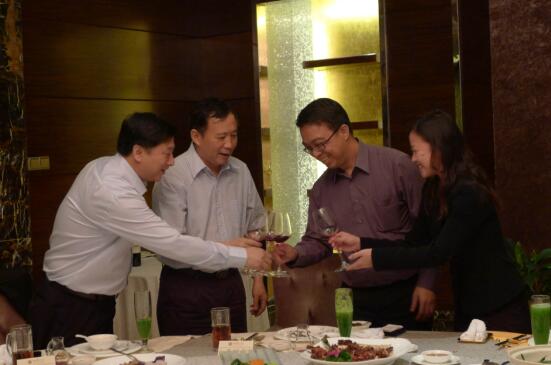 5月16日傍晚,省国资委主任吴志雄、副主任杨晓喻、副巡视员张雪在长沙潇湘华天大酒店宴请了新加坡政府投资有限公司高级副总裁吴财文先生、新加坡宜康医药保健集团市场拓展总经理郑涵颖女士一行,三湘集团有限公司董事长刘胜辉、副总经理刘任及湘铁集团副总经理李维克等应邀出席了晚宴。