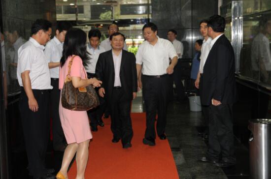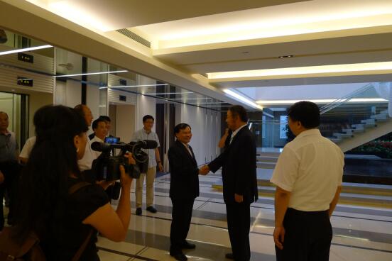 刘胜辉董事长在三湘大厦大厅迎接胡伟林市长一行。
