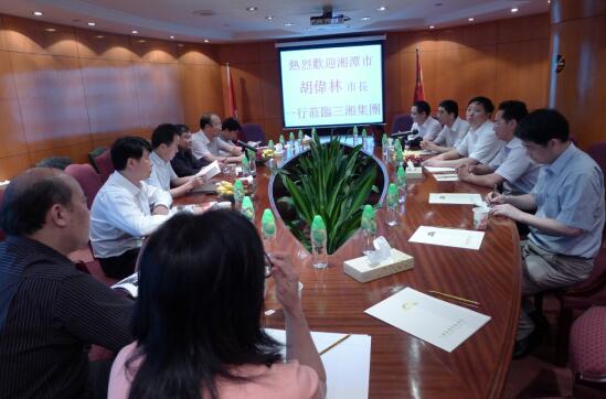 6月17日上午,湘潭市委副书记、市政府市长胡伟林率湘潭市委常委、市政府副市长刘健、市政府副市长陈忠红、市政府秘书长戴德清、市招商局长黄韧、市财政局长喻湘等11人代表团到三湘集团调研工作。三湘集团刘胜辉董事长率集团副总经理李其辉、刘任及集团助总余大红、李亮德、集团综合部副部长曾功等参加调研活动。刘董事长对胡市长一行的到来表示热烈地欢迎,对胡市长在省财政厅工作期间长期给予三湘集团的支持表示诚挚的感谢,同时向客人介绍了三湘集团的历史、现状及将来的工作目标,希望胡市长在湘潭市主政期间继续支持三湘集团的各项工作。
