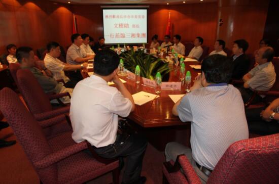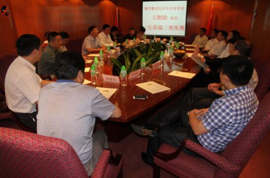 刘胜辉董事长和何寄华副市长、黎勇顾问在三湘大厦37楼会见室交流。