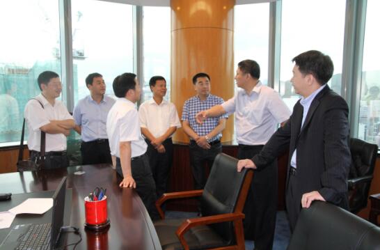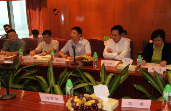 刘胜辉董事长与何寄华副市长、黎勇顾问等在38楼董事长办公室交谈。