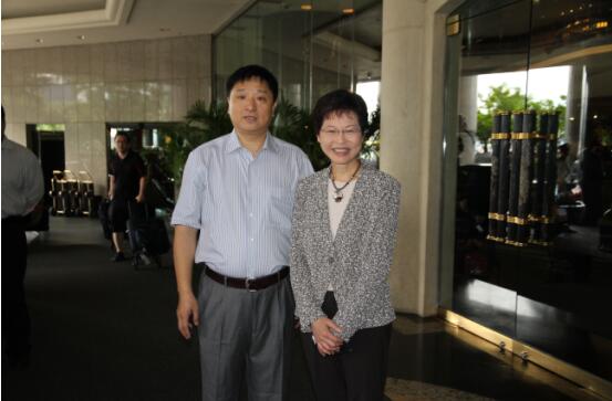 香港特区政务司司长林郑月娥女士(右)同三湘集团有限公司董事长刘胜辉合影。