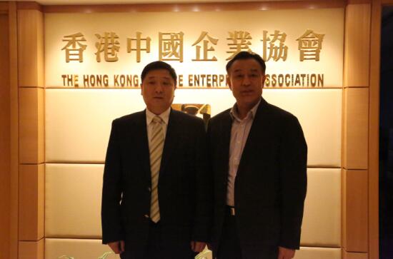 图为香港中国企业协会冯洪章总裁(右)和刘胜辉董事长(左)合影。