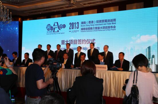 作为湖南省“港洽周”的主题活动之一,湖南(香港)战略性新兴产业项目对接会吸引了来自香港、湖南等地100余位企业界人士参加。会上20个项目现场签约,总投资42.6亿元人民币,引进资金28.6亿元;发布项目150个,总投资936.3亿元。三湘集团作为驻港联系公司,协办了本次活动。