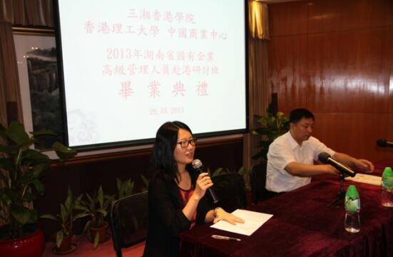 8月28日下午,由湖南省铁路投资集团有限公司和湖南省公路建设投资有限公司主办、三湘香港学院和香港理工大学承办的2013年湖南省国有企业高级管理人员赴港研讨班在香港三湘大厦37楼举行了结业仪式,这是自三湘香港学院开办以来首次在三湘大厦举行的结业仪式。