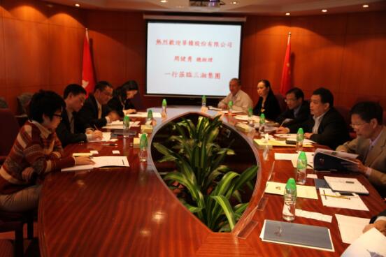 郭学驰副总裁向江西省投资集团赴港调研组介绍了三湘集团的基本情况、发展历程和未来发展规划,并就调研组提出的问题做了说明和讨论。
