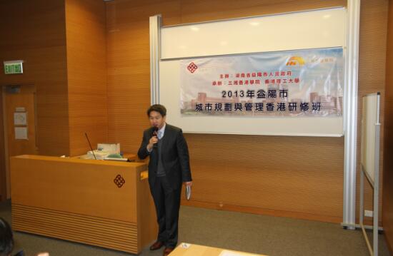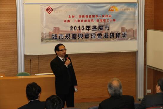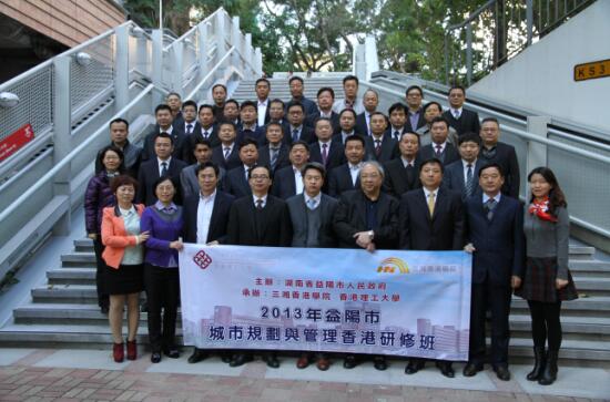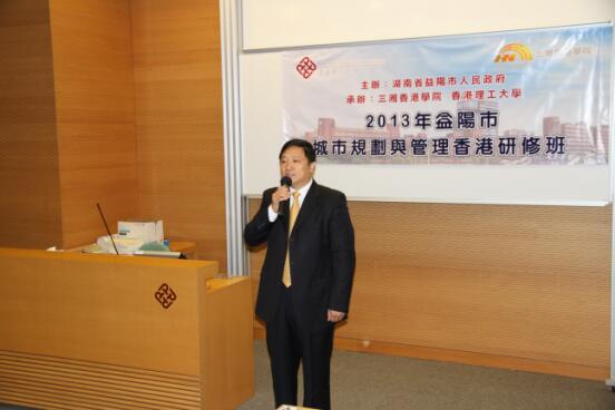 12月18日上午,由湖南省益阳市人民政府主办,三湘香港学院和香港理工大学承办的2013年益阳市城市规划与管理香港研修班在香港理工大学举行了隆重的开班典礼。中央人民政府驻港联络办公室经济部副部长孙湘一,中共益阳市委、市人民政府市委常委、副市长彭建忠先生,香港理工大学专业进修学院首席讲师兼中国商业中心课程主任张启枝博士,三湘集团有限公司董事长、三湘香港学院执行院长刘胜辉作为主礼嘉宾出席了开班典礼。香港理工大学中国商业中心行政主任王诗华博士担任司仪。