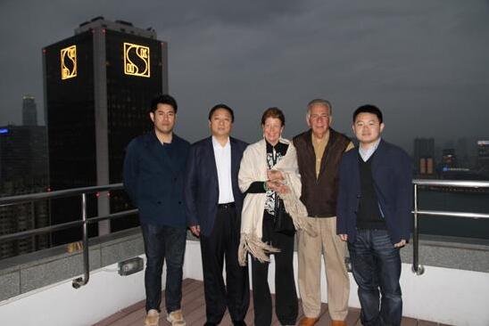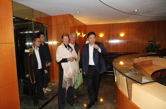 三湘集团有限公司董事长、总裁刘胜辉陪同美国圣道大学校长夫妇参观三湘大厦。