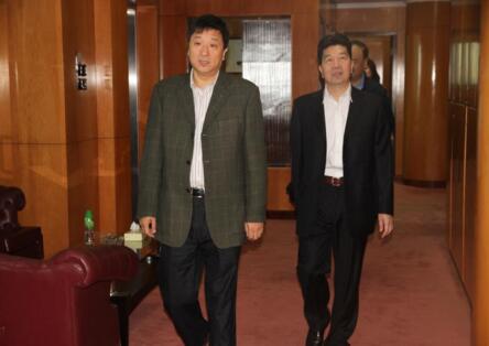 湖南省商务厅副厅长罗双锋(右)在三湘集团董事长、总裁刘胜辉(左)陪同下参观了香港三湘大厦