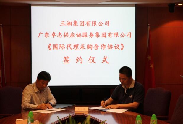 8月5日下午,广东卓志供应链服务集团有限公司董事长洪志权、副总裁陈立鹏、总经理陈海良一行到三湘集团有限公司香港总部,与三湘集团有限公司签署了《国际代理采购合作协议》等相关协议,双方就跨境电商的国际采购业务展开正式的合作。
