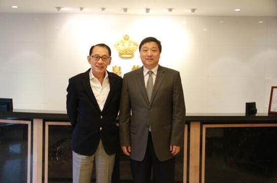 图为香港英皇集团董事会主席杨受成先生(左)和三湘集团有限公司董事长刘胜辉(右)亲切合影