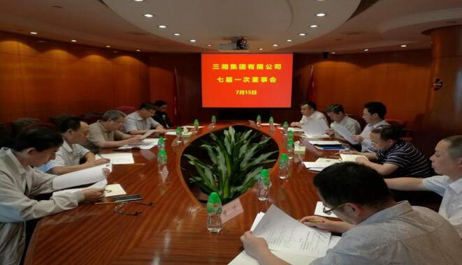 7月15日下午,集团公司在香港三湘大厦37楼会议室召开七届一次董事会。会议由董事长刘胜辉主持,全体董事出席。省政府派驻省属国有重点企业监事会主席邹福明,省国有企业监事会五办事处处长毛利辉,公司相关领导荣华、曾功,上届董事郭学驰、刘任及相关部门负责人列席会议。