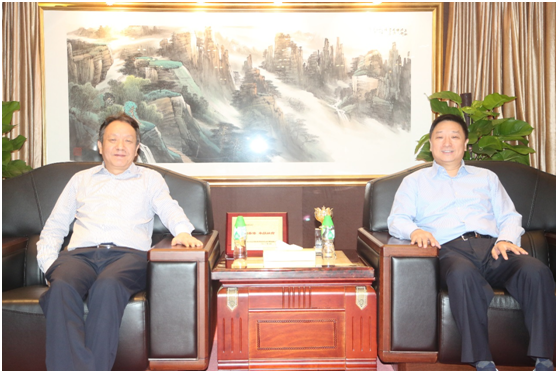 图为张美诚副主任(左)与刘胜辉董事长(右)亲切合影