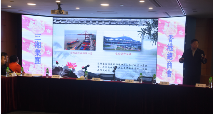 香港总商会中国委员会等约六十名会员参与该会议,三湘集团副总裁喻日辉、总经济师曾功应邀出席会议。