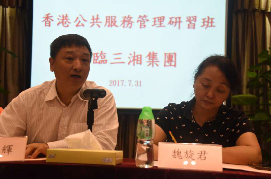 7月31日下午,湖南省委副秘书长、省编办主任魏旋君,国务院港澳事务办公室联络司司长陈继光率“香港公共服务管理研习班”全体学员到访三湘集团香港总部,并参观了“湖南大铺子”农产品展示展销中心。