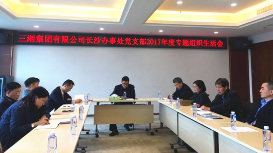 3月26日下午,三湘集团有限公司驻长沙办事处党支部在长沙召开三湘集团有限公司2017年度组织生活会,集团公司董事长刘胜辉,董事、副总裁聂晓光到会并进行指导,会议由长沙办事处党支部书记陈铁军主持。