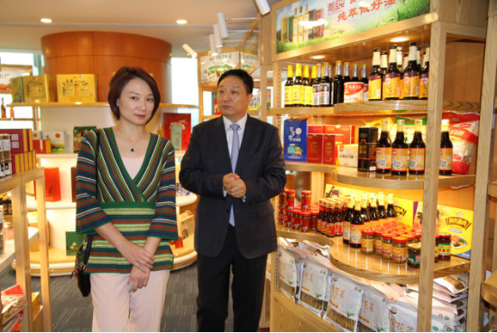 随后李慧琼主席一行在刘胜辉董事长的陪同下参观了湖南大铺子展示展销中心。
