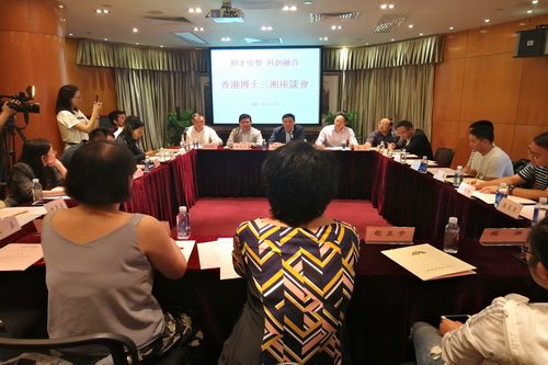 7月18日下午,来自香港大学、香港科技大学、香港中文大学、香港理工大学、香港浸会大学等5所高校近20名博士生及科研工作者,就“招才引智,科创融合”这一主题来到三湘集团进行交流座谈。