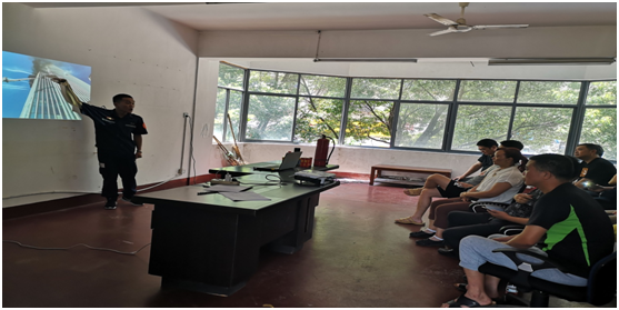 首先,教官给大家讲解了消防安全基本常识,火灾预防措施,介绍了灭火器的使用及有效期限的认知。随后,以图文与讲解相结合的方式生动讲述了多种情况下火灾现场的灭火方法和逃生的基本原则。“一摇、二拔、三喷”是打开灭火器的第一道程序。