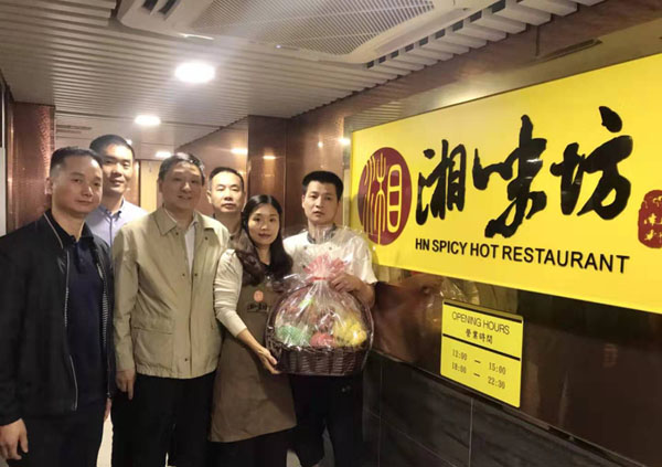 调研期间,刘胜辉一行实地询问了湖南苑、湖南轩、湘味坊等湘菜馆当前香港餐饮业严峻形势下的运营情况,鼓励各餐馆沉着、冷静面对持续数月的社会动荡,并提出解决思路与应对策略建议。