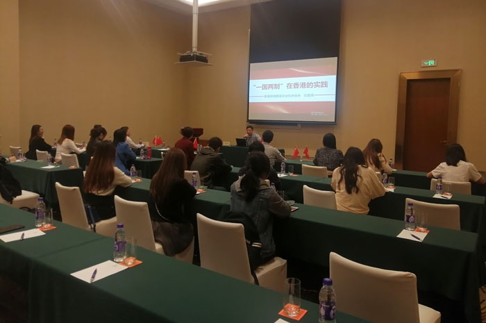 刘胜辉以《“一国两制”在香港的实践》为主题,围绕“一国两制”的成因、“一国两制”在香港的落实落地、以及“一国两制”如何行稳致远等三个方面展开讲授,具有较强的政治性和理论性。讲授过程中,刘胜辉寄语青年人,希望爱国爱港力量要发挥维护香港繁荣稳定的中流砥柱作用,成为维护法治、反对暴力、恢复社会稳定的中坚力量,顾全大局,团结一致向前看,用良知、正气、行动守护香港。