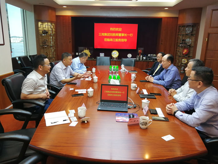 6月29日下午,三湘集团董事长刘胜辉一行赴珠江船务(股份)有限公司开展业务交流洽谈。珠江船务企业(股份)有限公司董事局主席黄烈彰对刘胜辉一行的到访表示热烈欢迎。